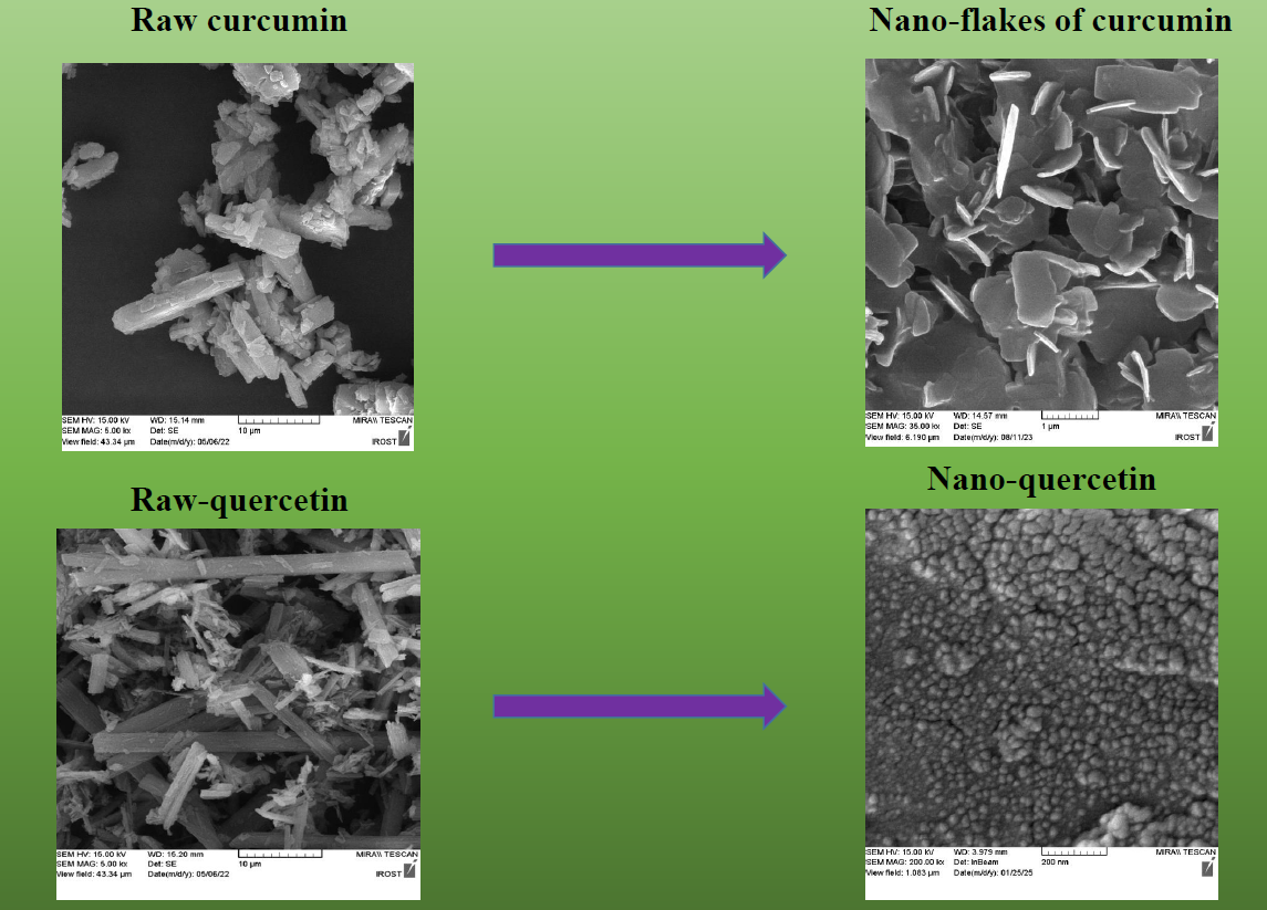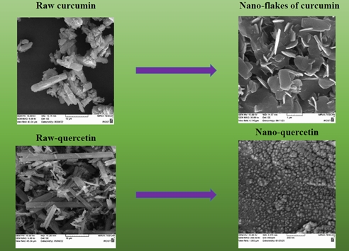 تصویر مرتبط با نانوذره‌سازی از کورکومین و کوئرستین به روش آب زیربحرانی تقویت شده با امواج فراصوت