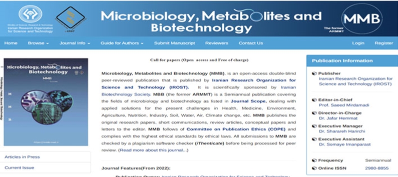 مجله Microbiology, Metabolites and Biotechnology (MMB) منتشرشده توسط سازمان پژوهش‌های علمی و صنعتی ایران در ISC نمایه شد.
